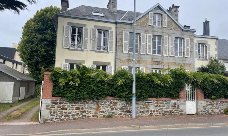 GRANVILLE, A proximit? des commerces, services et ?colesMaison de caract?re en pierres (pour partie en 1858) granit et bois d'une surface habitable d'environ de 235m? avec belle hauteur sous plafond sur un terrain clos de mur de 1862m? comprenant :Sous-sol,rez-de-chauss?e sur?lev? : entr?e, salon parquet? avec chemin?e et salon (45m2), petit bureau,cuisine, wc.En retour d'?querre formant rez-de-jardin : cabinet de toilettes avec deux douches s?par?es, salle de bainsA l'?tage : palier, wc avec lavabo, d?gagement / salle de jeux, 5 chambres.Au 2?me ?tage : 3 chambres, grenier.JardinGarage.Classe ?nergie : F - Classe climat : F - Montant estim? des d?penses annuelles d'?nergie pour un usage standard : 7410 ? 10100 € (base 2022) -Prix Hon. N?go Inclus : 525 000 € dont 5,00% Hon. N?go TTC charge acq. Prix Hors Hon. N?go :500 000 € - R?f : 028/1566