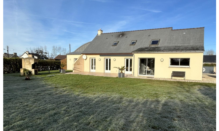 Belle maison dans les hauteurs d'Agon-Coutainville offrant de beaux volumes et une vie de plain pied. Au rez de chaussée : une entrée desservant une grande pièce à vivre salle à manger et salon avec poêle à granulés, un suite parentale avec dressing et salle d'eau, et une cuisine aménagée et équipée donnant sur le garage isolé. A l'étage, on trouve un palier desservant trois chambres, une salle de bain et douche, avec wc séparé. Possibilité de créer une chambre supplémentaire. Coté extérieur, on découvre au Sud-ouest une terrasse donnant sur le jardin. Cour à l'avant de la maison avec un appentis et un cabanon. Prix hon inclus de 3.96 % soit 480 000 € NV + 19 000 € HN, ch aqu.