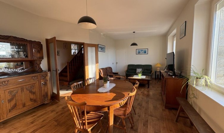 Granville, joli appartement situ? ? seulement 400 m de la mer et ? proximit? de toutes les commodit?s du centre ville.Cet appartement est id?al pour les familles, il d?compose au rez de chauss?e d'une entr?e desservant une cuisine ?quip?e et am?nag?e, un s?jour salon avec une vue mer, une v?randa donnant sur son jardin, une chambre, une salle de bains, et un wc.Escalier privatif desservant au-dessous une pi?ce avec un wc et un lavabo.A l'?tage : une pi?ce desservant deux chambres.A l'ext?rieur, une courette et une cave.Cet appartement dispose ?galement de deux garages attenant ? la propri?t?.Ne manquez pas cette opportunit? de vous installer dans un cadre de vie exceptionnel. Contactez nous pour une visite et laissez-vous s?duire par ce bien au potentiel immense.SCP Thouroude, Vimond-Ory, Danjou de Granville au 02.33.91.31.61 ou le service de n?gociation au 06.48.68.88.44