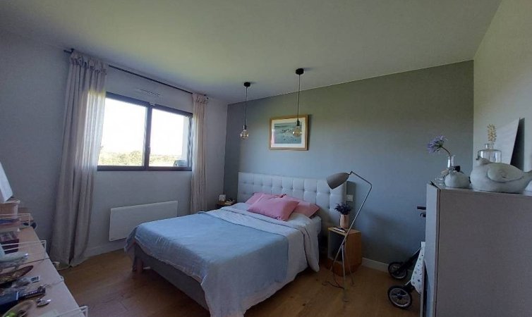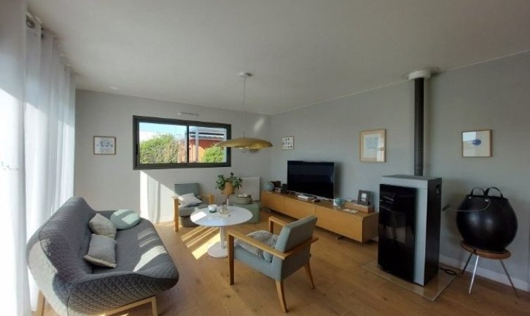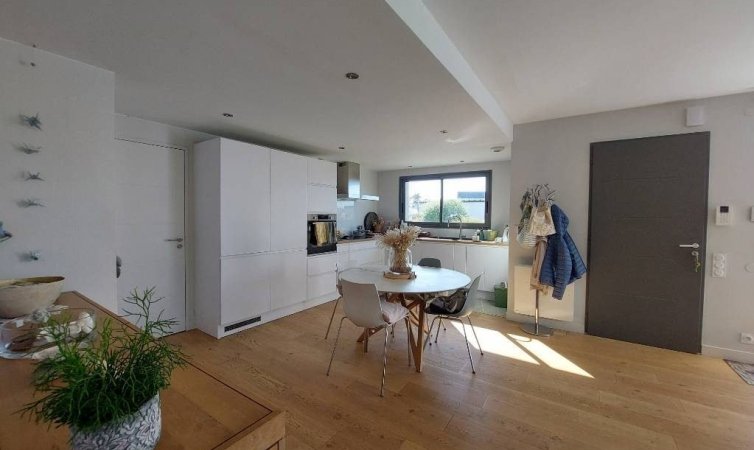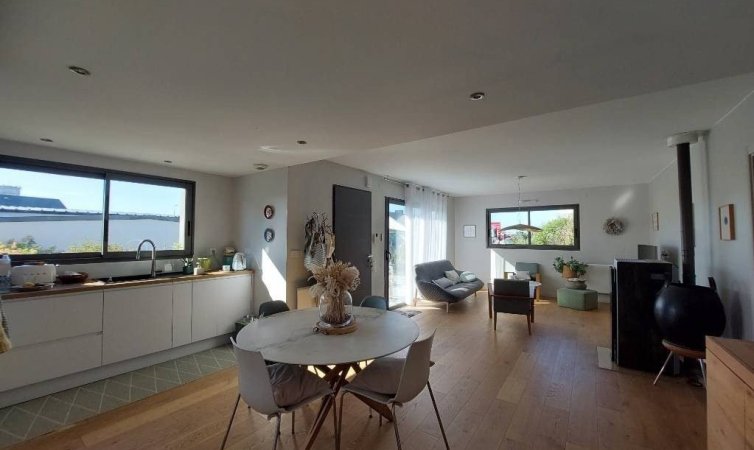 Saint Pair sur mer, ? seulement 1 km des commerces et de la plage.Maison de plain-pied construite en 2019 comprenant une belle pi?ce de vie, deux chambres, une salle d'eau et un garage attenant.Accessible pour personne ? mobilit? r?duite (PMR)Chauffage po?le ? granul?sLe tout sur un joli terrain clos et arbor? de 672 m?