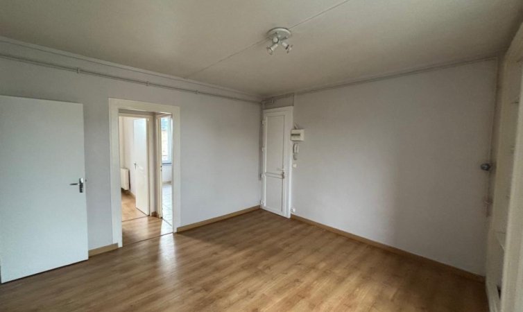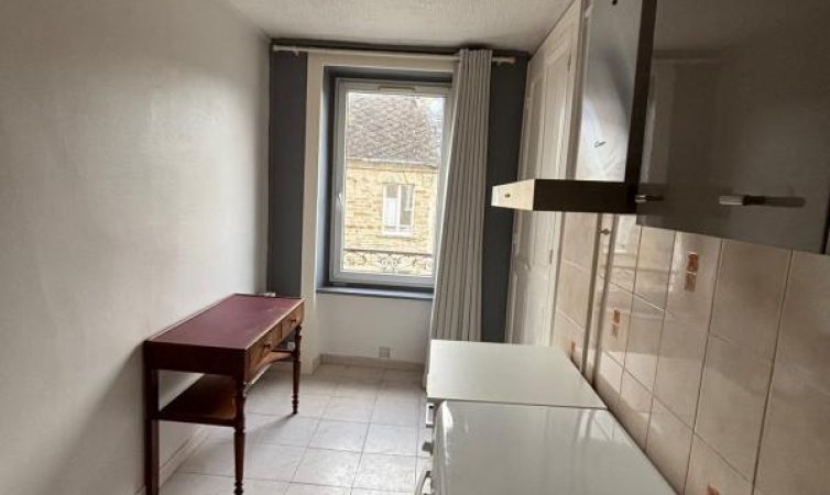 Appartement au 2?me ?tage d'un petit immeuble calme en ville.Comprend un s?jour, cuisine am?nag?e et semi-?quip?e, chambre, salle d'eau-wc.Grenier priv? au-dessus.Chauffage radiateurs ?lectriques r?cents, interphone.DPE : E GES : BLoyer: 410€ + 30 € charges.Visite uniquement sur dossier.Libre de suite.