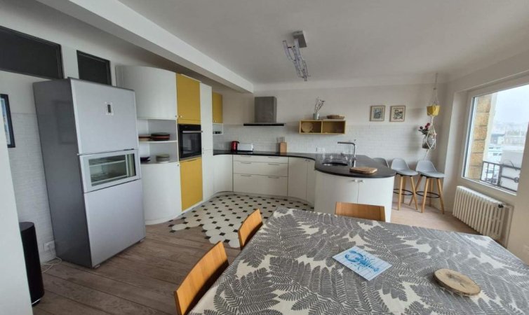 GRANVILLE, Vue sur le port, appartement au 2?me ?tage de type F4 de 112.93m? avec belle pi?ce de vie de 60m?. Cave. - Classe ?nergie : C - Classe climat : B - Montant estim? des d?penses annuelles d'?nergie pour un usage standard : 1440 ? 1980 € (base 2021) - Prix Hon. N?go Inclus : 592 800 € dont 4,00% Hon. N?go TTC charge acq. Prix Hors Hon. N?go :570 000 € - R?f : 028/1588